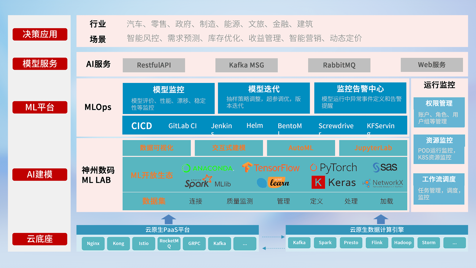 数据+模型双引擎驱动,,,面向智能服务场景,,,,快速灵活利用AI技术,,,,支持业务决策,,,,助力企业智能化转型破局。。